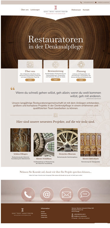 Visual design, Full WordPress website in German,  Responsive design across all devices, Optimized image handling (before/after restorations, project documentation), Natural SEO (clean structure, accessibility, performance)